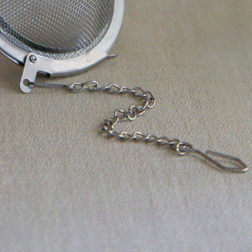 Ball Infuser (5cms diameter) made of high grade rust-resistant 304 stainless steel extra-fine perforated mesh with a sturdy clamp to lock the infuser with ease and chain with hook at one end to suspend the infuser in the cup with ease.