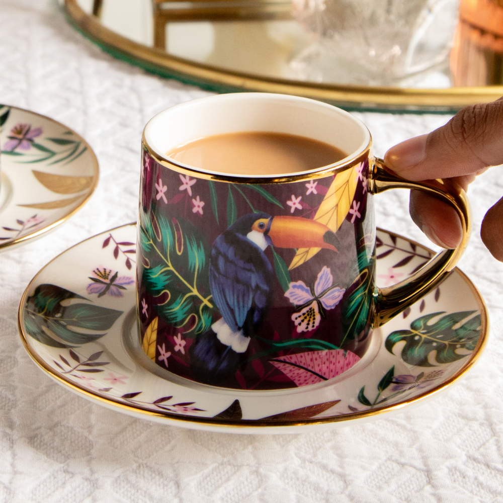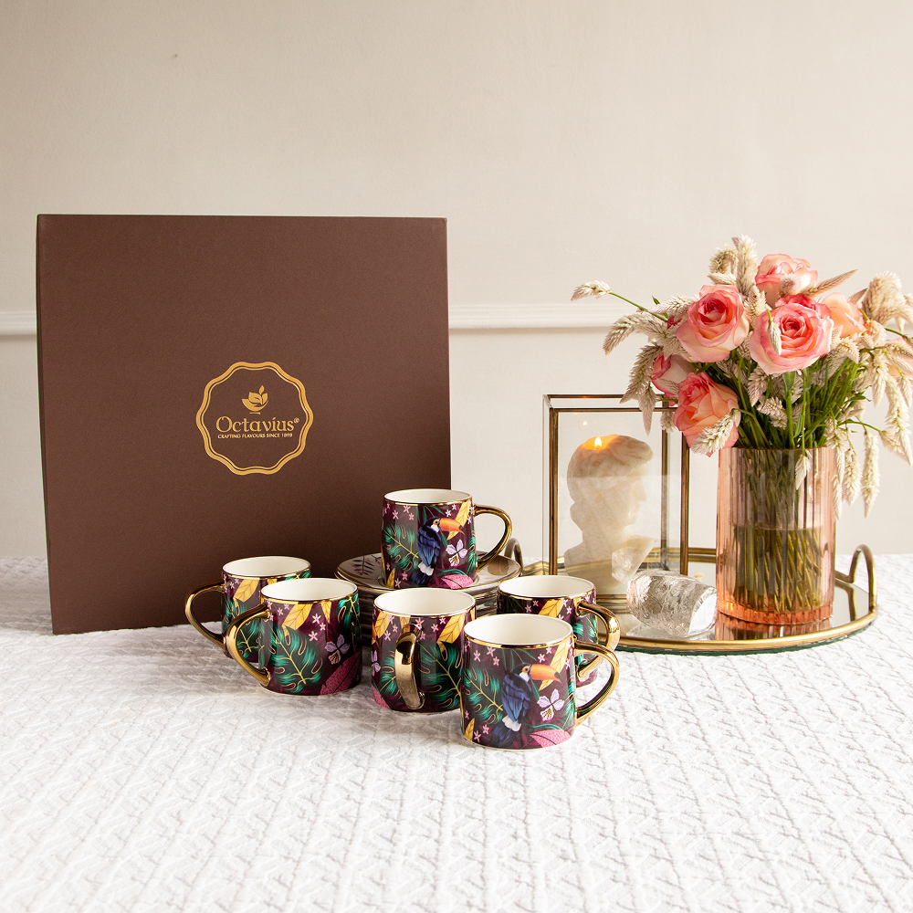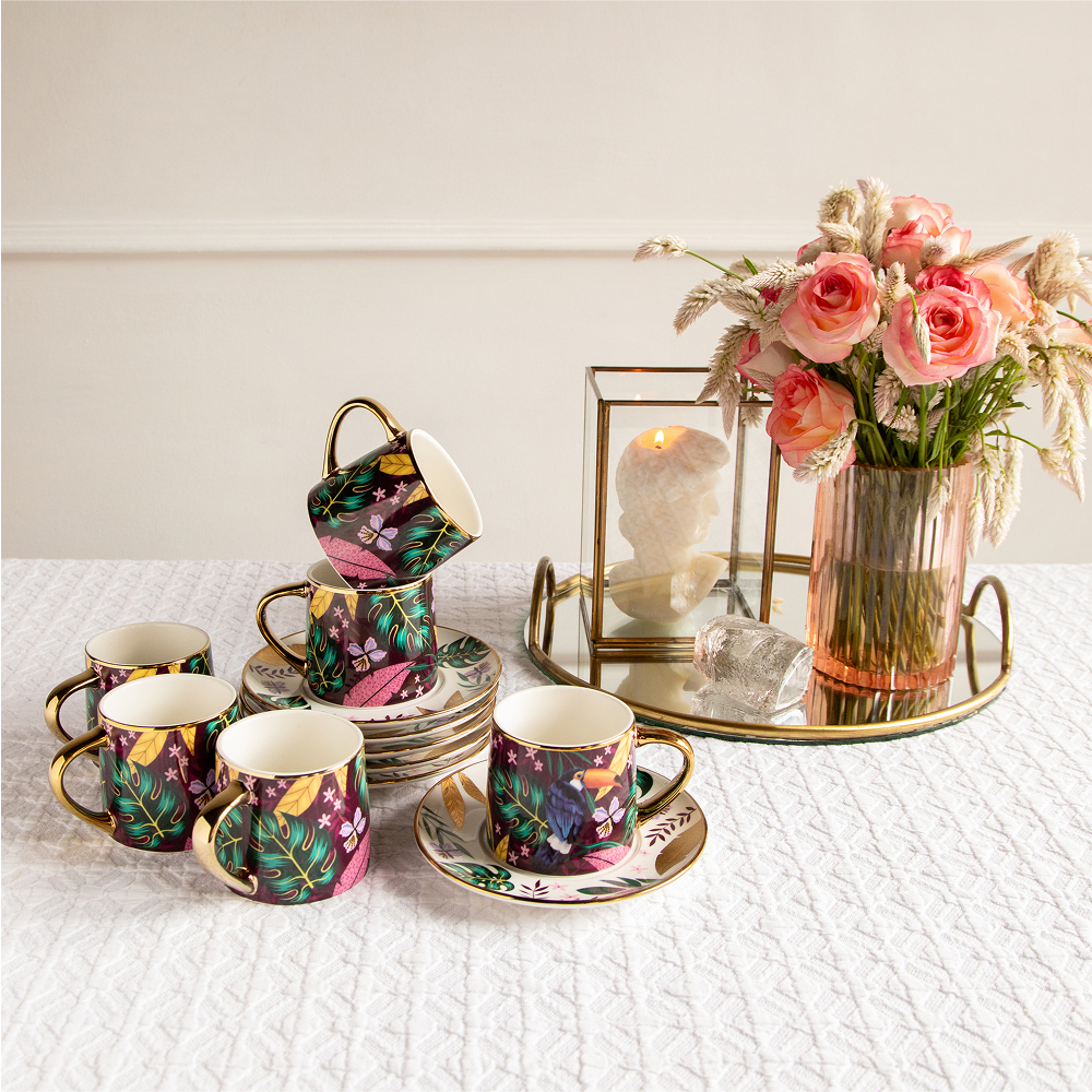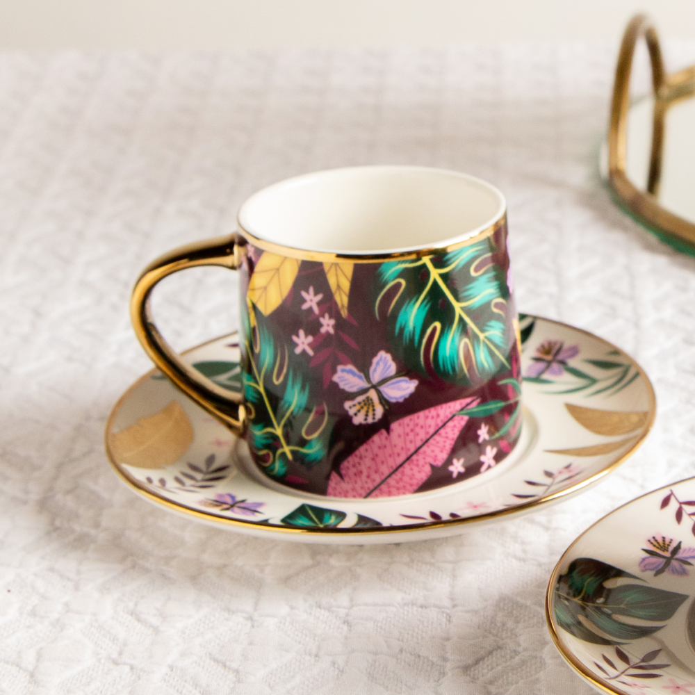 Golden Rainforest Tea Set (6 Cups & Saucers) – 200 ml Each