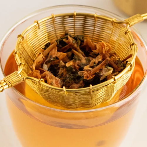 Introducing our Handmade Brass Wire Mesh Tea Strainer, an essential piece of teaware meticulously crafted for both durability and comfort. Handmade with precision, its unique design ensures a comfortable grip for daily use, enhancing your teatime experience with its exquisite craftsmanship. Suitable for all loose leaf teas and tisanes, it guarantees a perfect brew every time with its fine mesh and ergonomic handle. Exuding elegance with its golden hue, it's a stylish addition to any collection. Proudly made in India, our Handcrafted Brass Tea Infuser showcases local artistry in Moradabad, adding a special touch to your teatime.