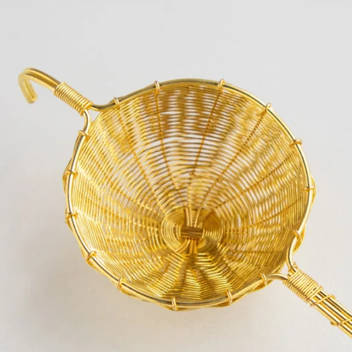 Tea strainer made of high-grade rust-resistant brass with a handle to comfortably hold the strainer.