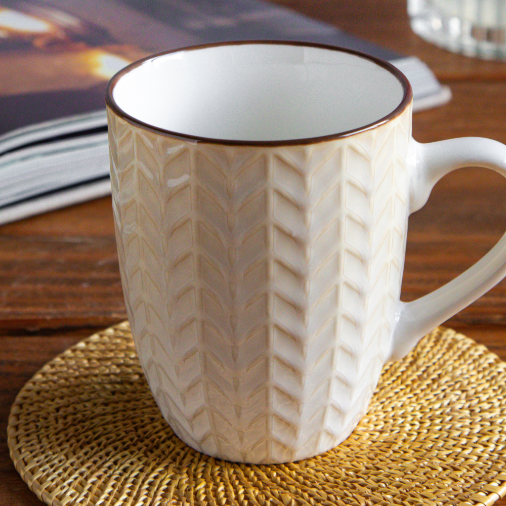 Luxe Weave Coffee Mug – Ivory Elegance (Set of 2) – 300 ml