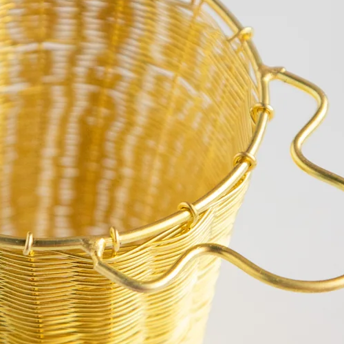 Crafted from the finest quality brass, this handwoven tea strainer is both beautiful and practical, making it a must-have in any teaware collection. Designed to fit seamlessly in a cup or teapot, its versatile design allows for customizable brewing options.Due to its depth, you can fill it up all the way to the top for a larger pour or halfway for a single serve. With its double handles resting gently on the rim, it offers effortless brewing and straining of loose leaf tea.As time passes, the brass will develop a rich patina, adding to its charm and character.