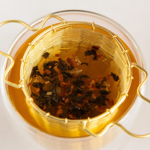 This beautiful handwoven strainer is designed for seamless brewing, offering rich flavors and easy use with loose-leaf teas