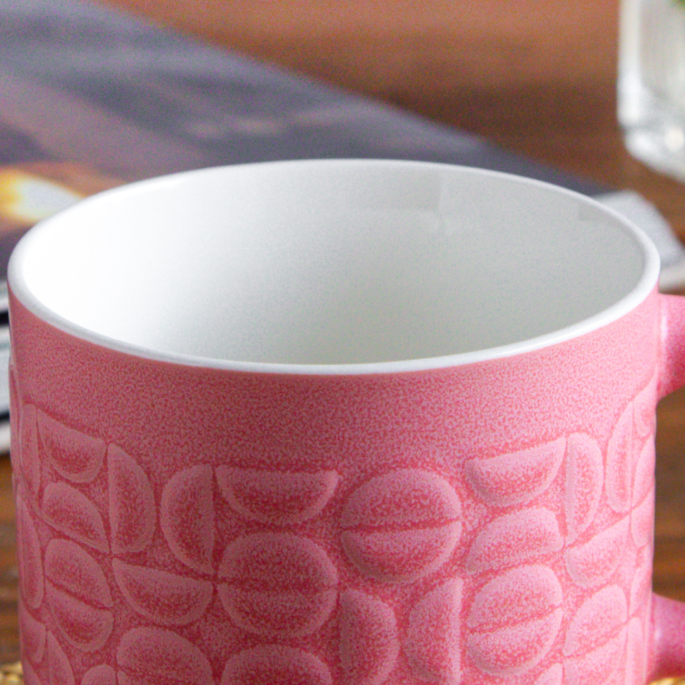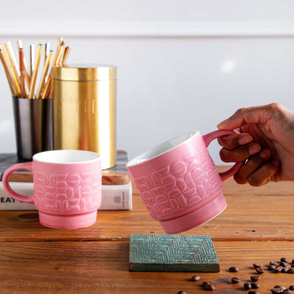 Soft, warm, and modern, the TerraCraft Dusky Rose Mug brings understated elegance to your daily brews. Designed in a muted rose-pink shade with a matte finish, it features an embossed geometric pattern and ivory glaze interior for a refined artisanal look. With a capacity of 380 ml, this premium ceramic mug is durable for everyday use and stylish enough for gifting. A chic addition to your tableware, it balances earthy warmth with contemporary design, making every sip feel special.