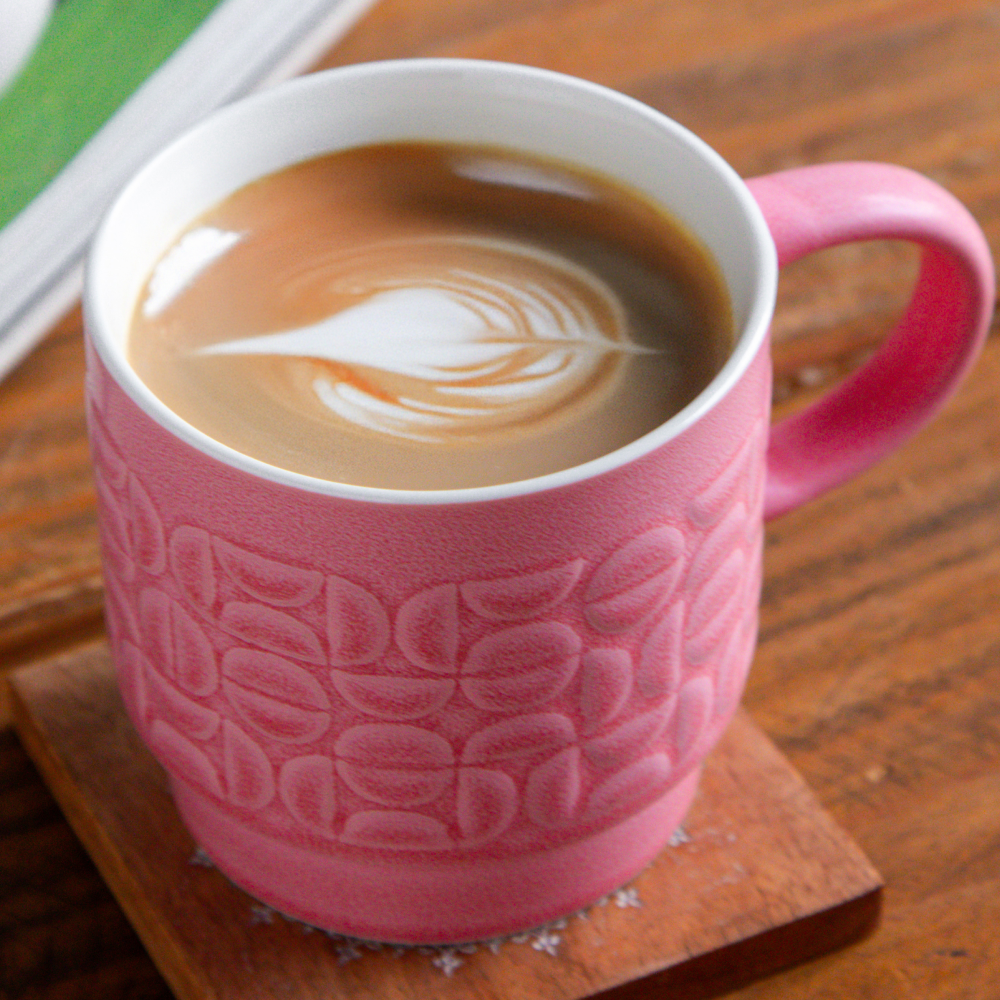 Premium ceramic mug with 380 ml capacity and artisan embossed detailing.