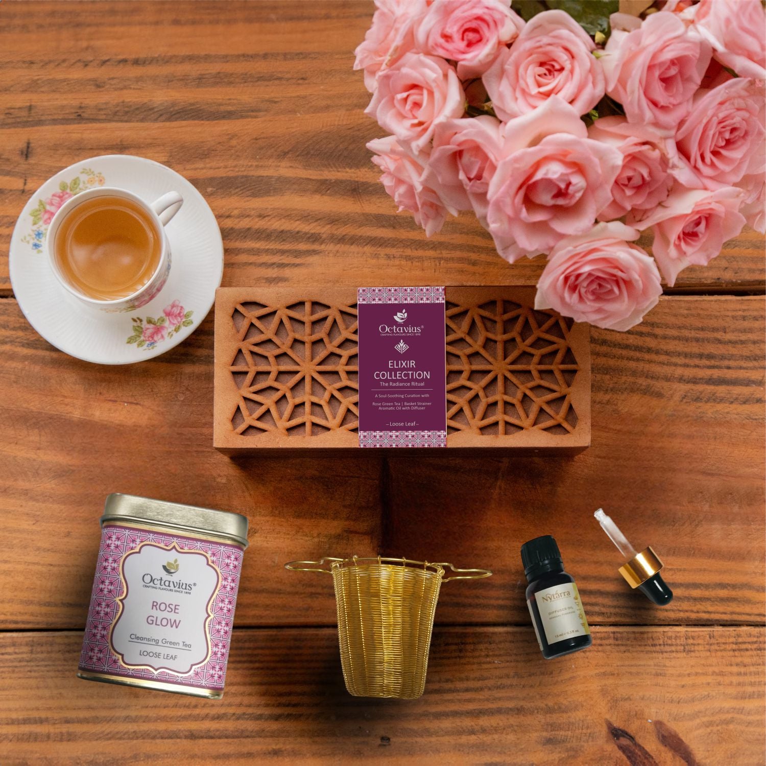Mother’s Day Tea Gift Box – Rose Glow Elixir with Aromatherapy & Brass Strainer