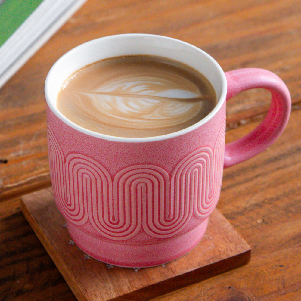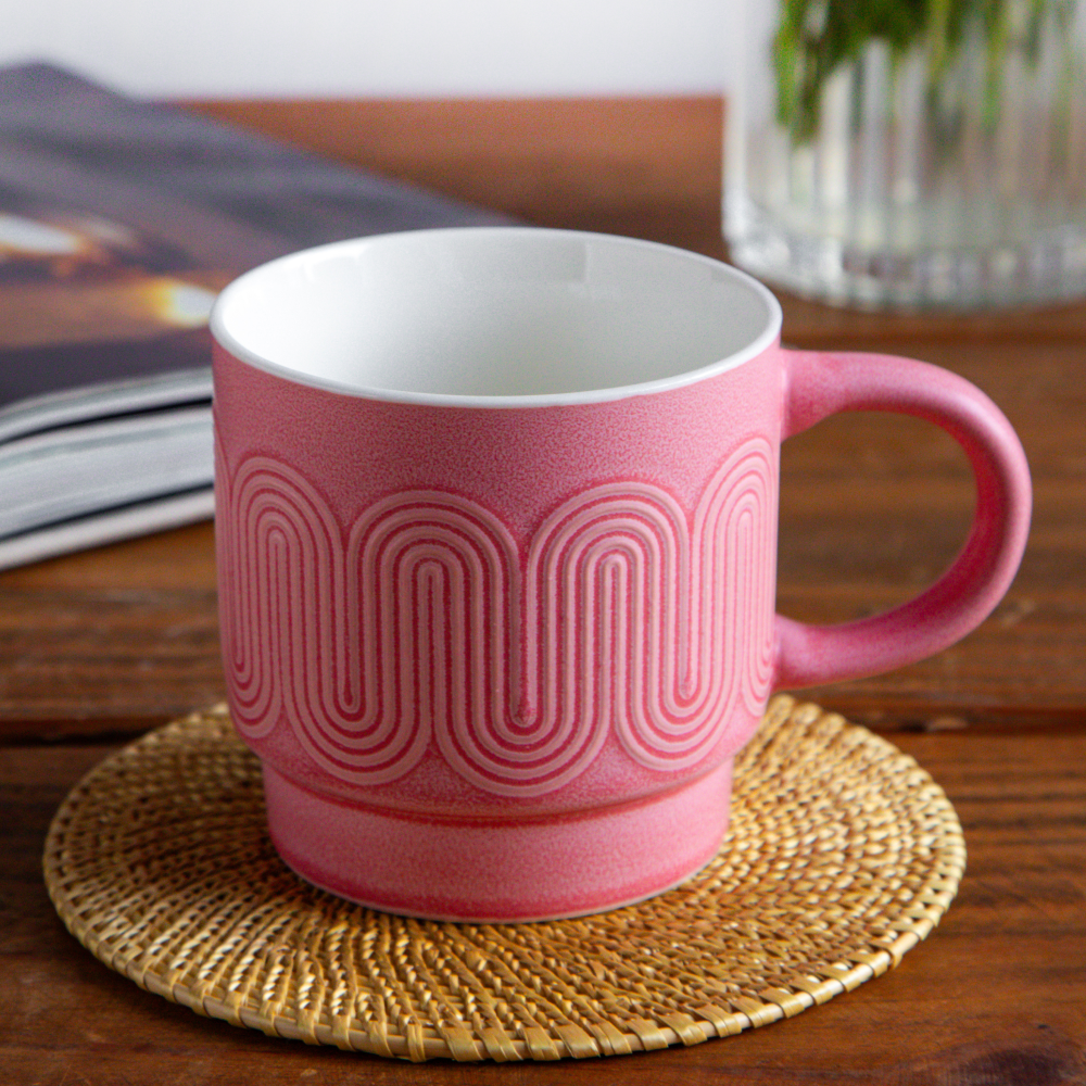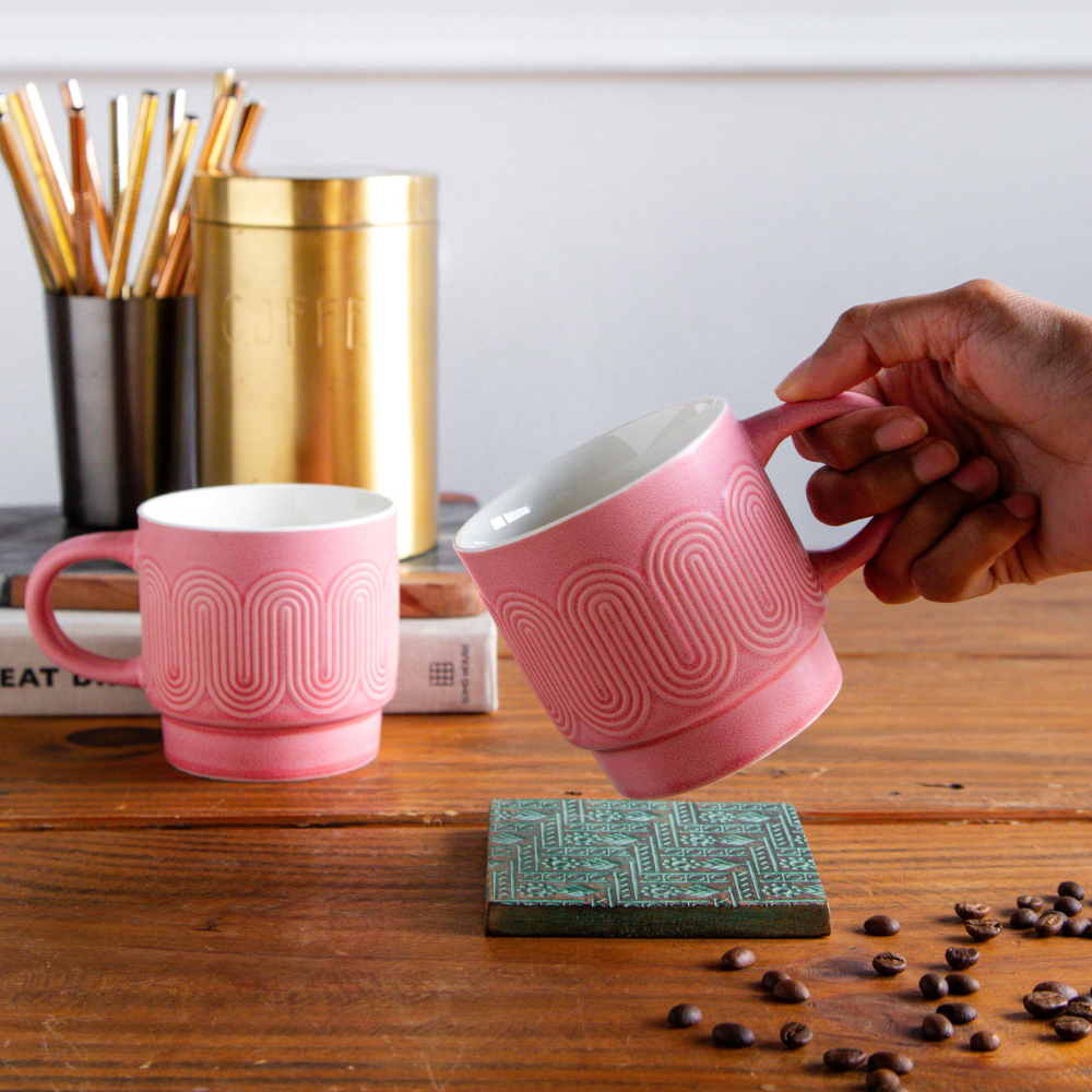 Elegant, modern, and soothing — the Waveform Rose Tide Coffee Mug is crafted in a soft blush pink with a matte finish and flowing embossed wave pattern. The smooth ivory inner glaze creates a graceful contrast, blending artistry with everyday comfort. With a spacious 380 ml capacity, this set of two mugs is ideal for enjoying tea, coffee, or hot chocolate. Durable enough for daily use yet stylish for modern table settings, the Rose Tide mugs bring charm and versatility to both personal indulgence and gifting.
