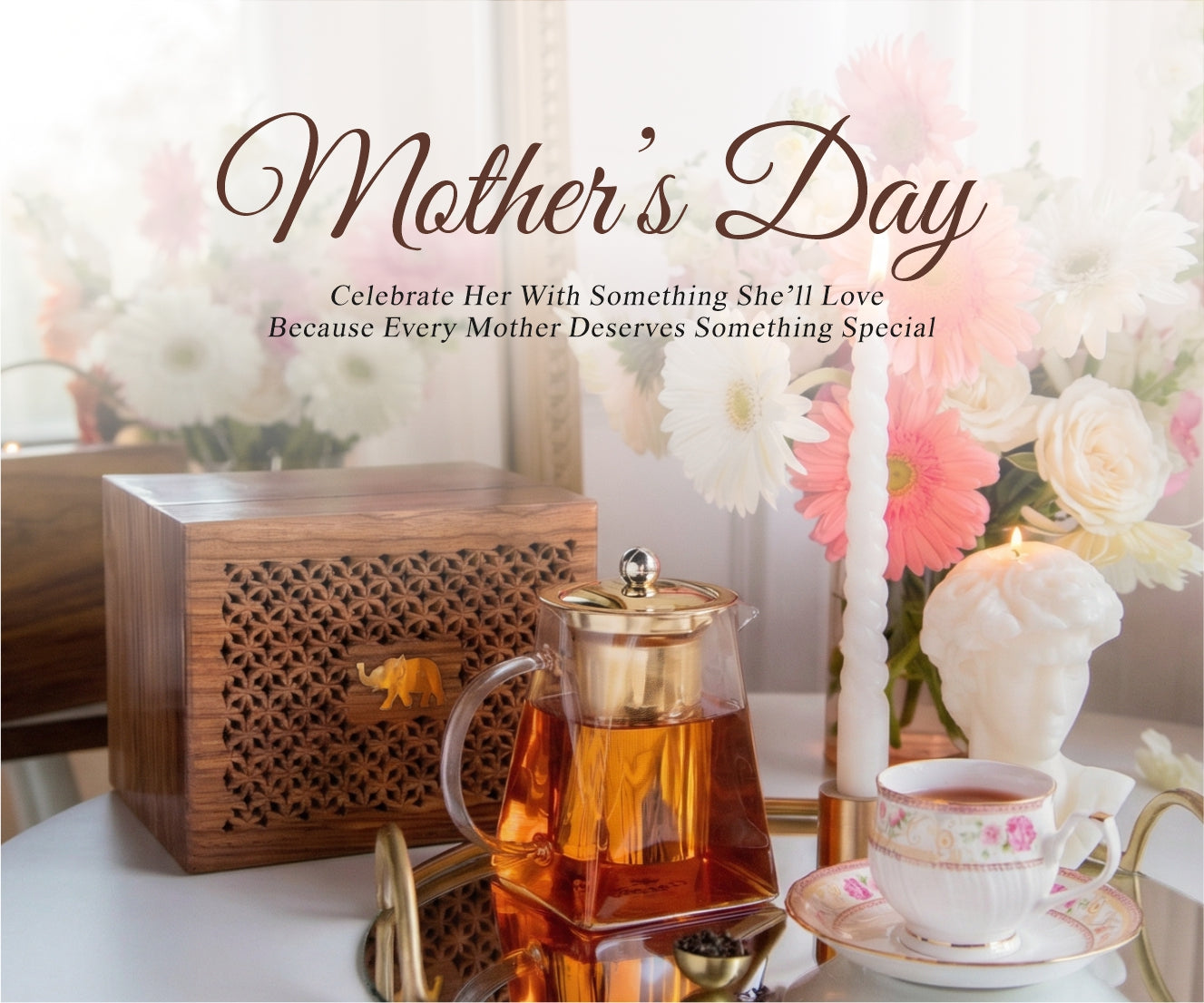 Ambrosial Tea Hamper (4 Wellness Teas, Organic Bubble candle & Infuser)